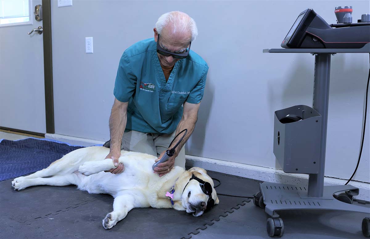 Laser treatments usually only take 2–6 minutes for each affected area. Animals experience no pain during the procedure, but they might enjoy a gentle warming sensation in the tissue. The veterinarian, clients, and patients all wear appropriate protective eyewear during the therapy session.